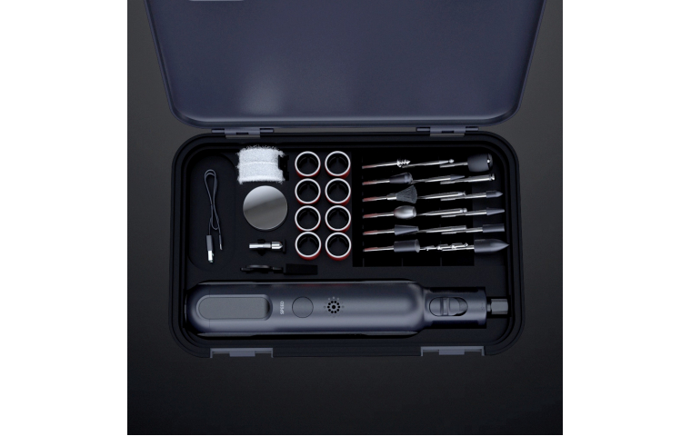 Благодаря комплекту принадлежностей и двум размерам зажимной цанги 2,4 мм и 3,2 мм, гравер может использоваться для обработки различных материалов, таких как керамика, фарфор, пластик, металл, стекло, сталь, алюминий, ракушки, латунь, эпоксидная смола, кокос, нефрит, камень, пластилин, орех, кость, дерево и другие. Модель имеет 6 ступеней регулировки скорости, вращение достигает 30000 об/мин. Устройство оснащено быстрым тормозом двигателя после выключения.