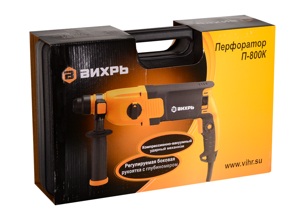 Перфоратор Вихрь П-800К оборудован надежным электродвигателем мощностью 800 Вт, обеспечивающим бесперебойную работу во время выполнения сложных задач. Перфоратор работает в двух режимах: сверление и сверление с ударом, оснащён электронной регулировкой числа оборотов.